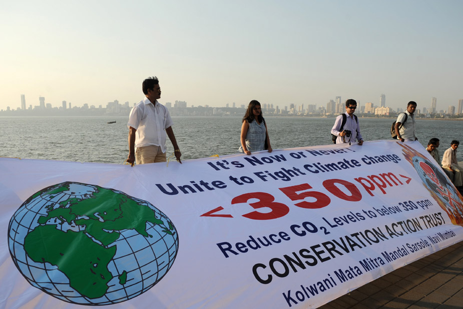 2009年10月24日,当日是350全球应对气候变化行动日,世界各地的民众纷纷用自己的方式来表示对全球气候变化的关注和担忧。图为印度民众组织的活动。