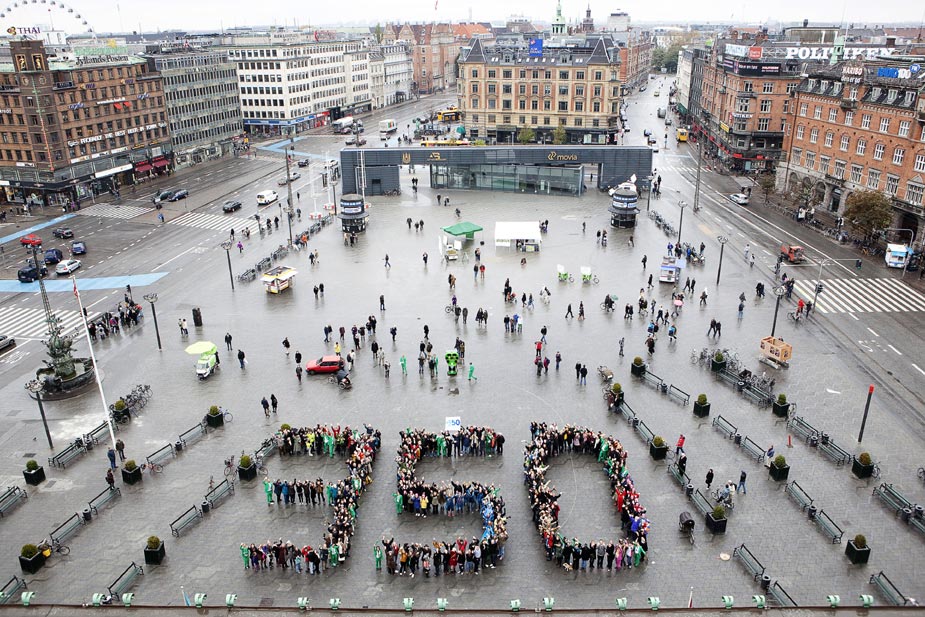 2009年10月24日,当日是350全球应对气候变化行动日,世界各地的民众纷纷用自己的方式来表示对全球气候变化的关注和担忧。图为丹麦民众组织的活动。