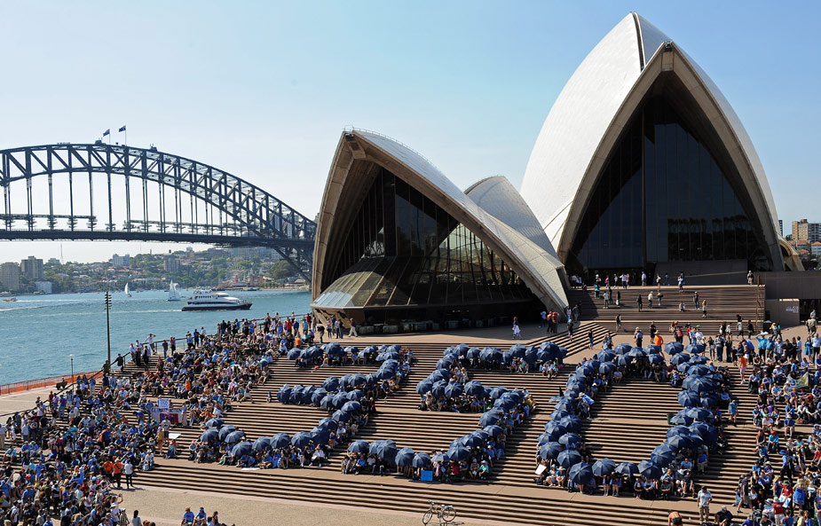 2009年10月24日,当日是350全球应对气候变化行动日,世界各地的民众纷纷用自己的方式来表示对全球气候变化的关注和担忧。图为澳大利亚民众组织活动。