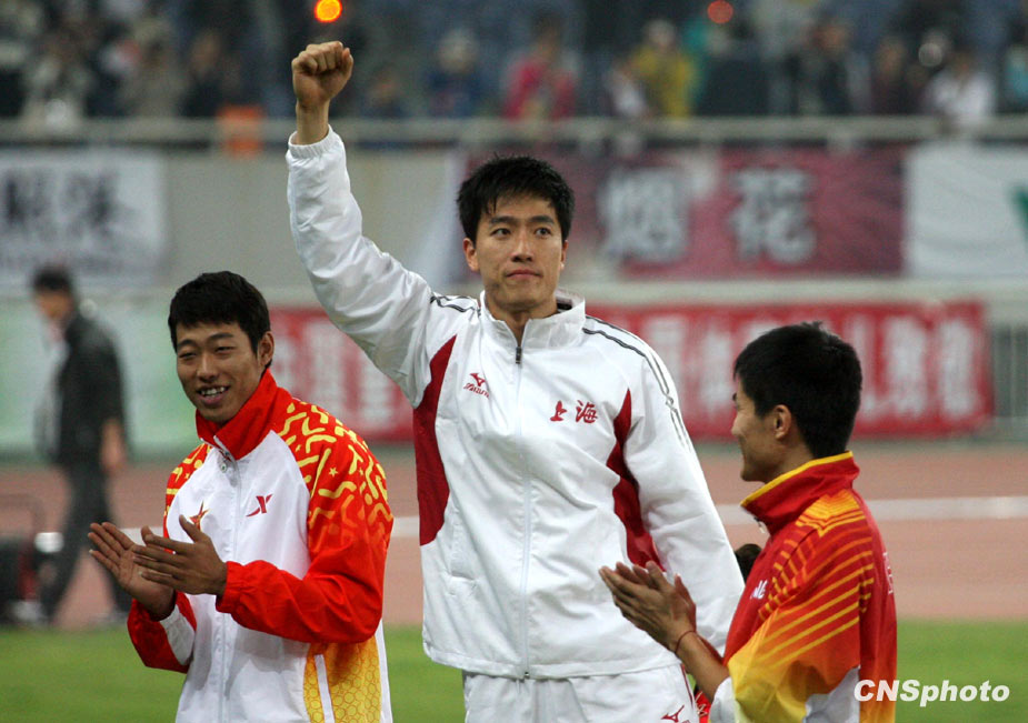 10月25日,在全运会田径男子110米栏决赛中,上海代表团选手、“中国飞人”刘翔以13秒34的成绩勇夺冠军,同时也成就了其全运会该项目三连冠的伟业。