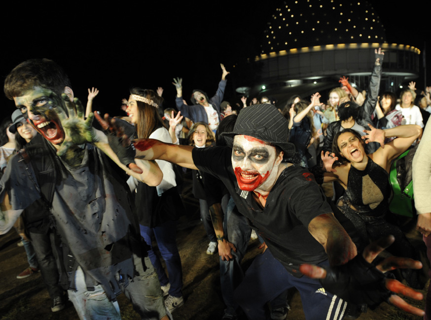 25日,“战栗全世界”活动在全球300多座城市同期举行,全球一共有大约20000人同时跳起了迈克·杰克逊著名的战栗舞。图片来源:中国新闻网