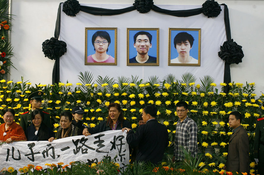 10月28日上午,湖北荆州市在市殡仪馆举行隆重追悼大会,悼念陈及时、何东旭、方招三位舍己救人大学生。数万群众赶到追悼会现场,手捧菊花为英雄道别。