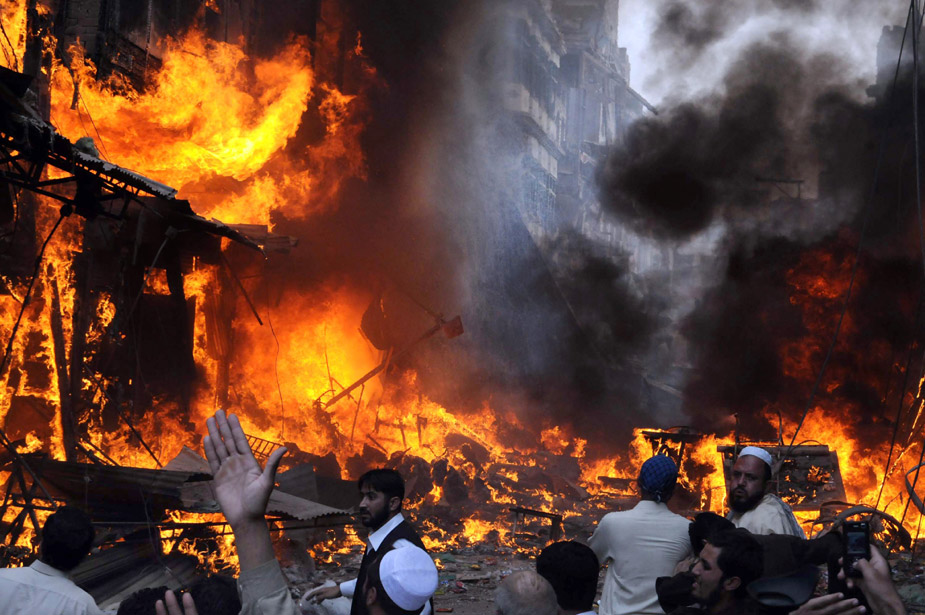 10月28日,巴基斯坦西北部城市白沙瓦一个人口密集的集市遭汽车炸弹袭击。图片来源:中国新闻网