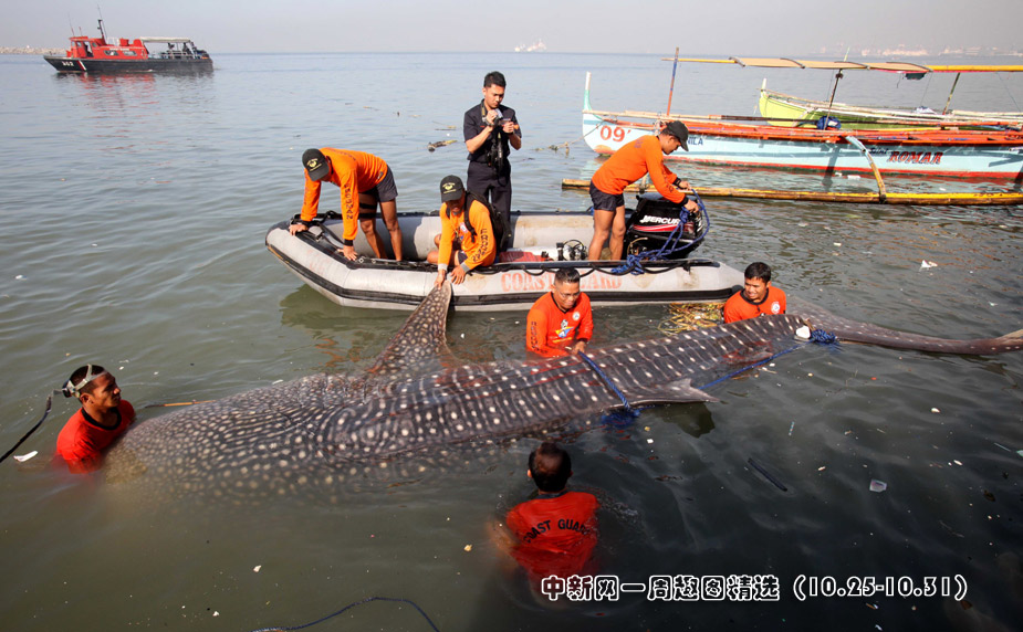 10月28日,菲律宾渔民在马尼拉湾一处防浪堤附近发现了一具鲸鲨尸体。这具鲸鲨体长近4米,目前死因不明。>>点击观看详细内容