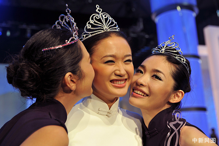 10月31日晚,“2009中华小姐环球大赛”总决赛在上海国际体操中心隆重上演,最终来自北京的田桐、上海的朱盈菲和陕西的李若凝分别摘得本届大赛的冠亚季军。中新网记者 金硕 摄