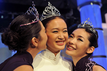 10月31日晚,“2009中华小姐环球大赛”总决赛上,12名入围总决赛的佳丽身着迷你裙大秀性感爵士舞。中新网记者 金硕 摄