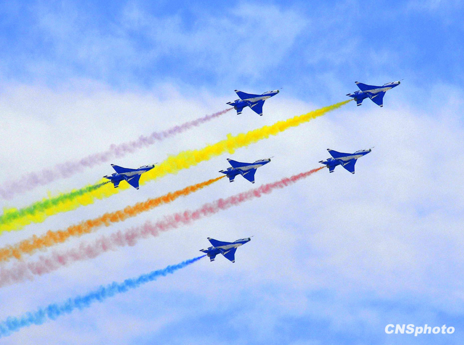 11月3日,空军八一飞行表演队和空军八一跳伞队在北京沙河机场举行预演,迎接中国人民解放军空军建军六十周年。