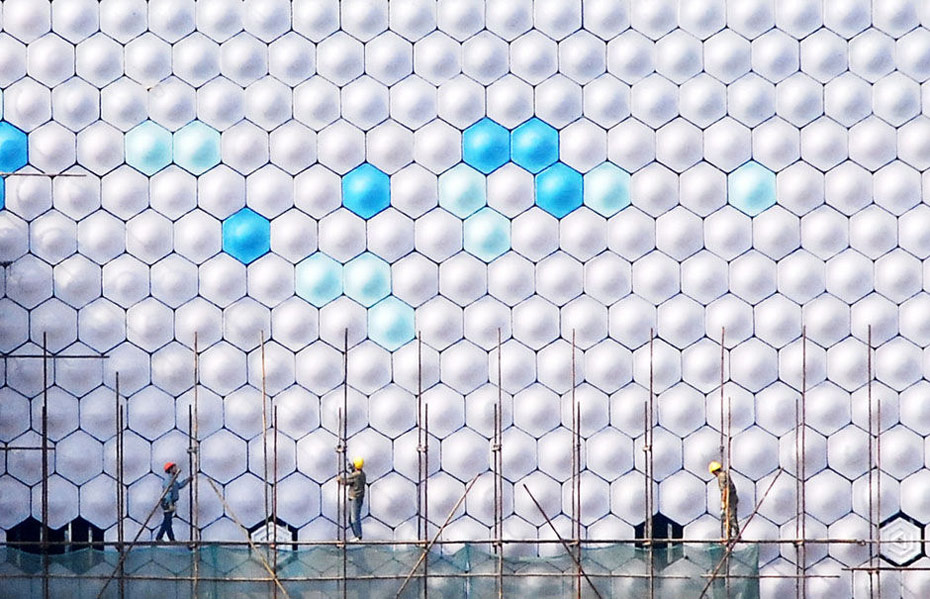 图为外形呈“会发光的墙”造型的中国信息通讯馆。钮一新/CFP
