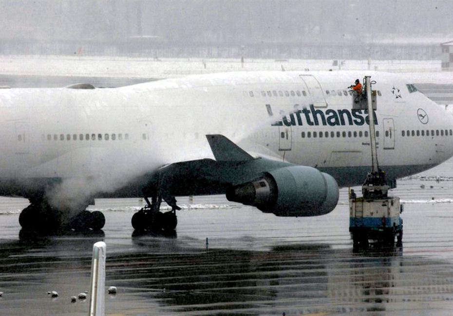 11月12日,由于雪天雾大机场好多航班延误或取消,机场工作人员了为了保证游客出行的顺畅,一大早就为停在停机坪待飞的飞机作融雪处理。