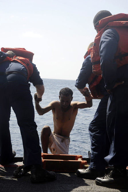 11月17日,亚丁湾,3名渔民抱着木板在海面上漂流3天后获救。据悉,他们遭遇了十几名名疑似海盗的劫持,海盗们让其选择或跳海逃生或被杀死。来源:中国新闻网