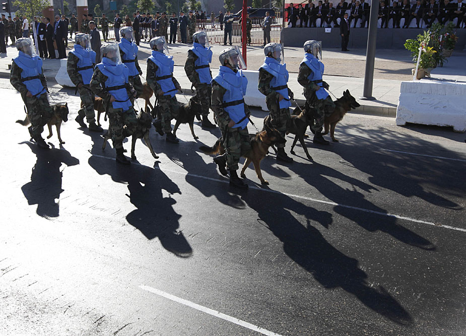 11月22日,黎巴嫩军队在贝鲁特市中心举行阅兵式,庆祝黎巴嫩独立66周年。图片来源:中国新闻网