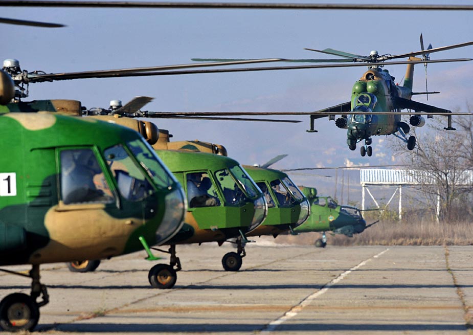 11月26日,马其顿军队在马其顿中部举行了大规模的反恐军演。包括MI-24型武装直升机等多种重武器参加了这次军事演习。图片来源:中国新闻网