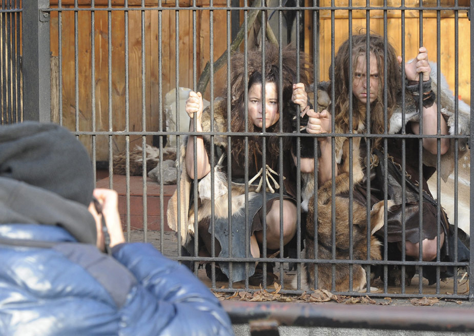 11月27日,波兰首都华沙动物园里,一男一女两个志愿者扮成原始洞穴人向参观者进行展示。该动物园想通过这项为期一周的活动,提醒参观者注意人类也是动物界的一部分。