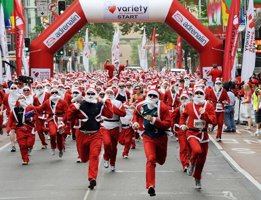 11月29日,在澳大利亚悉尼市中心,大约1800名“圣诞老人”参加群跑活动,迎接今年圣诞节的到来。