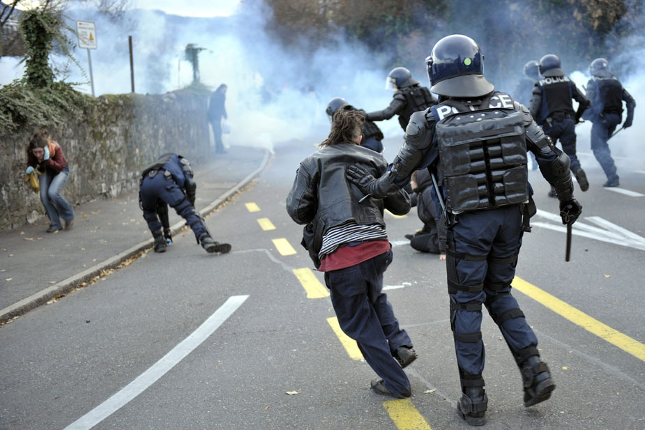 11月28日,在瑞士日内瓦发生的抗议世界贸易组织的游行活动引发暴力冲突,部分游行者点燃汽车、砸毁商店并与防暴警察发生冲突。