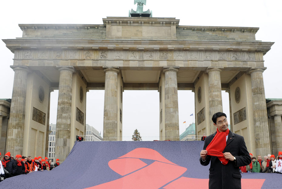 11月30日,德国卫生部长在为艾滋病日做宣传。12月1日是世界艾滋病日,2009年世界艾滋病日的主题是“普遍可及和人权”。世界各地民众组织各种活动呼吁人们关注艾滋病。图片来源:中国新闻网
