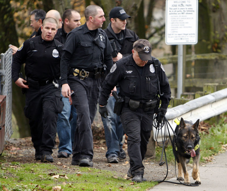 11月29日,美国4名警察在华盛顿州空军基地附近一间咖啡馆被两名枪手枪击,4人当场死亡。美国军方派遣反恐特警小组展开大规模追查。图片来源:中国新闻网