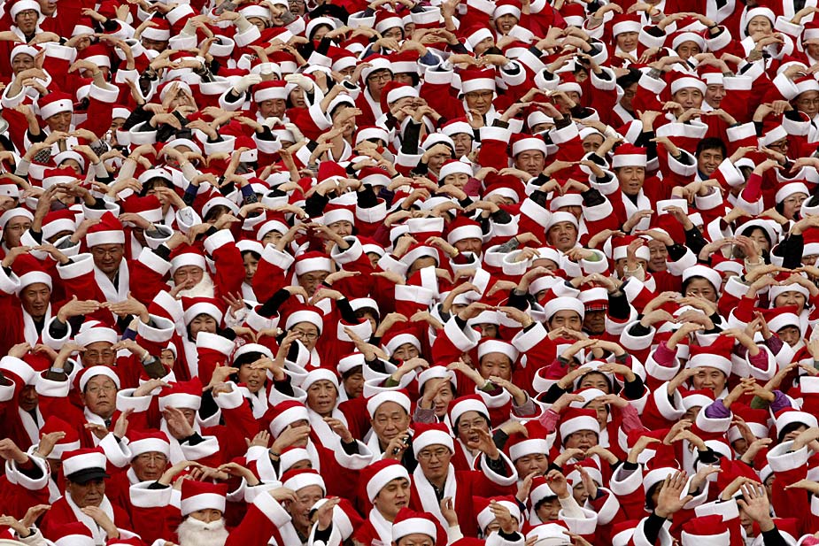 12月1日,韩国首都首尔市,一千多名“圣诞老人”举行游行为社会慈善项目筹款。图片来源:中国新闻网
