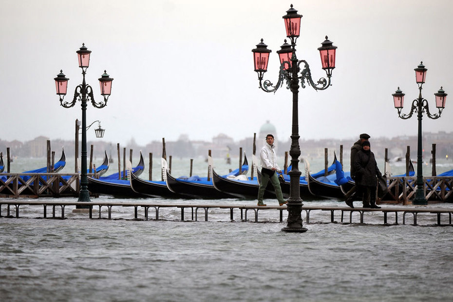 11月30日,意大利水城威尼斯受潮汐和一股强烈的热带风暴影响再次被洪水淹没,部分地区最高水位达到1.31米。图片来源:中国新闻网