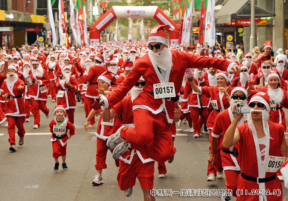 11月29日,在澳大利亚悉尼市中心,大约1800名“圣诞老人”参加群跑活动,迎接今年圣诞节的到来。图片来源:中国新闻网>>点击观看详细内容