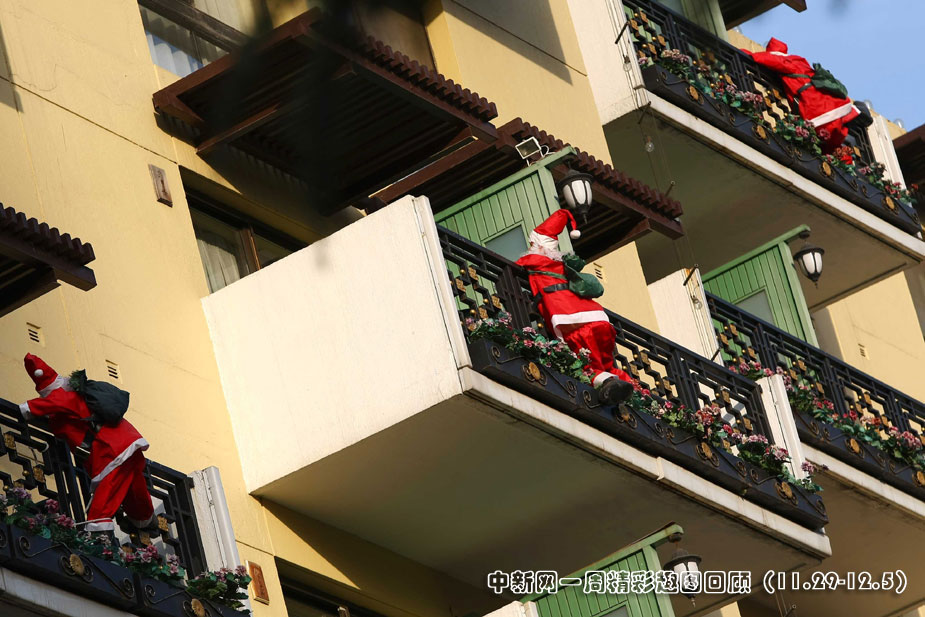 近日,随着圣诞节即将到来,北京圣诞氛围越来越浓厚。在北京某饭店,有许多圣诞老人爬上客房的阳台准备送礼物了。中新社发 富田 摄 图片来源:中国新闻网>>点击观看详细内容