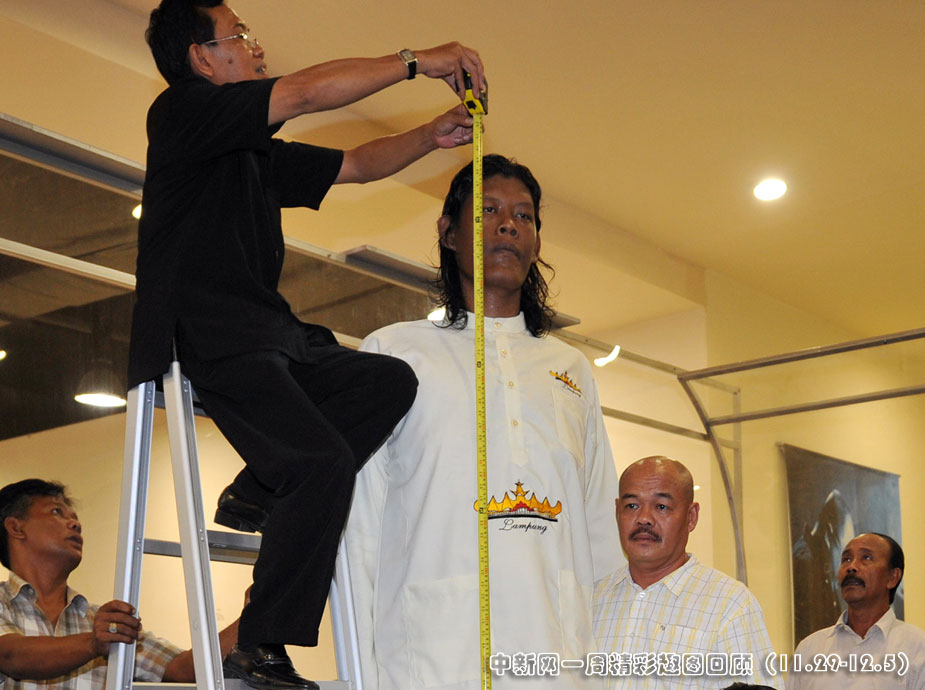 日前,印度尼西亚传出一个名叫苏帕华诺的男子身高达2.71米,可能是全球第一高人。不过据后来实际测量,苏帕华诺其实身高2.42米,并未打破吉尼斯纪录。图片来源:中国新闻网>>点击观看详细内容