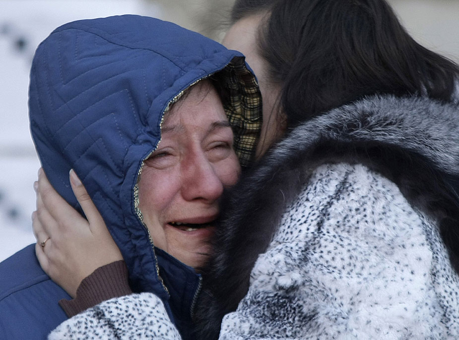 12月6日,在俄罗斯彼尔姆边疆区首府彼尔姆市,人们在夜总会火灾事故现场附近哀悼遇难者。图片来源:中国新闻网
