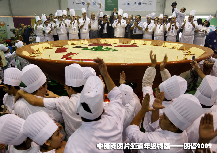 世界最重豆沙饼:10月14日,黎巴嫩厨师制作出2056公斤巨型豆沙饼,打破了世界吉尼斯纪录。图片来源:中国新闻网