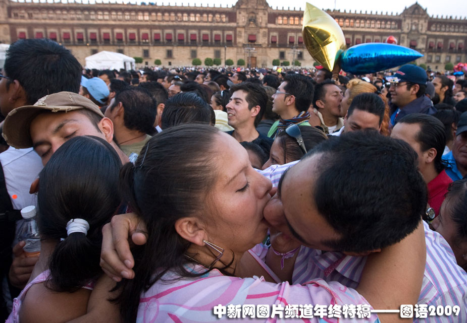 世界最多爱侣接吻:2月14日,墨西哥首都墨西哥城32000对爱侣在索卡洛广场同时接吻打破了吉尼斯纪录。图片来源:中国新闻网