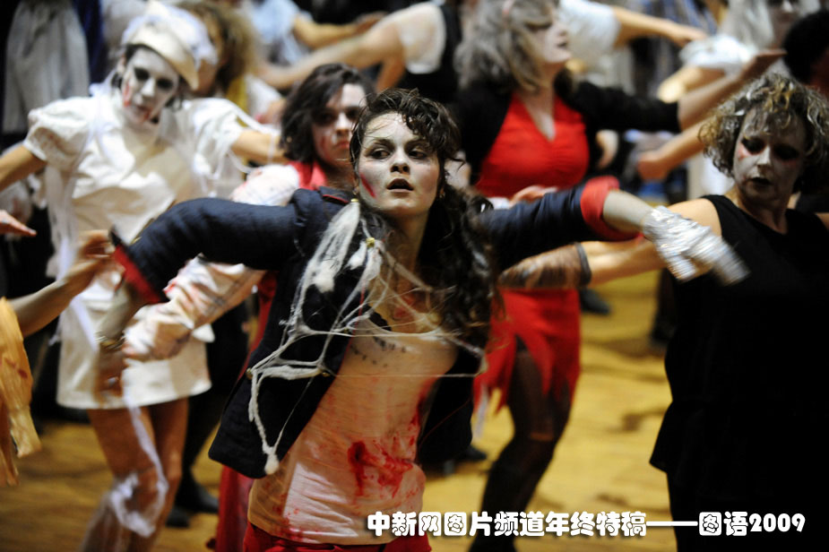 全世界最多人同时跳舞世界纪录:10月25日,“战栗全世界”活动在全球300多座城市同期举行,全球一共有大约20000人同时跳起了迈克·杰克逊著名的战栗舞。歌迷们借此表达了对这位流行音乐之王的哀思。并且刷新了全世界最多人同时跳舞的世界纪录。图为在法国的Gourin,歌迷跳起“战栗舞”。图片来源:中国新闻网
