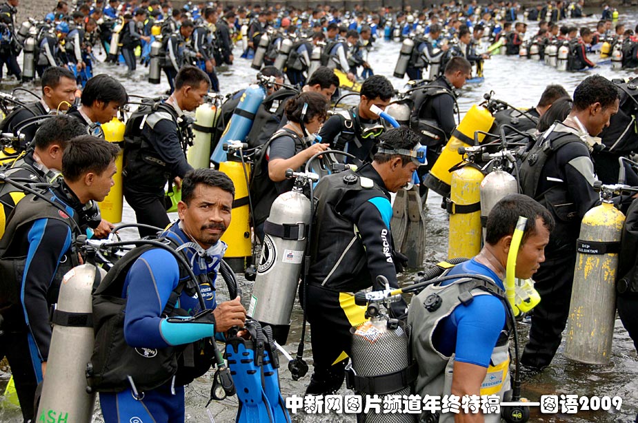 同时潜水最多人:8月16日,印尼2468名潜水员同时潜入水下,这一壮举创造了一个新的吉尼斯世界纪录。图片来源:中国新闻网