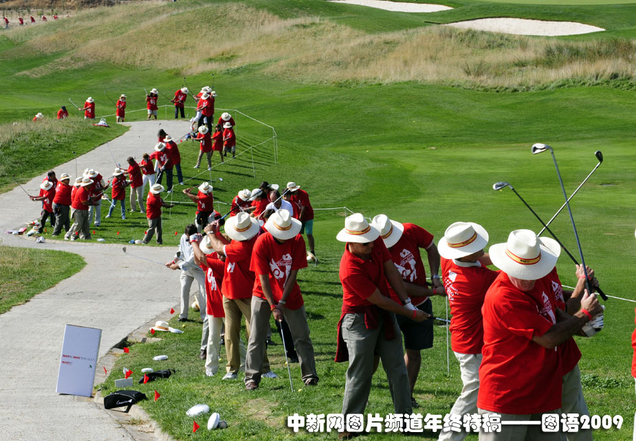 最多人同打高尔夫球:9月27日,2016名高尔夫球手在西班牙首都马德里的国家高尔夫球中心同打高尔夫球,创造了一项新的吉尼斯世界纪录。图片来源:中国新闻网