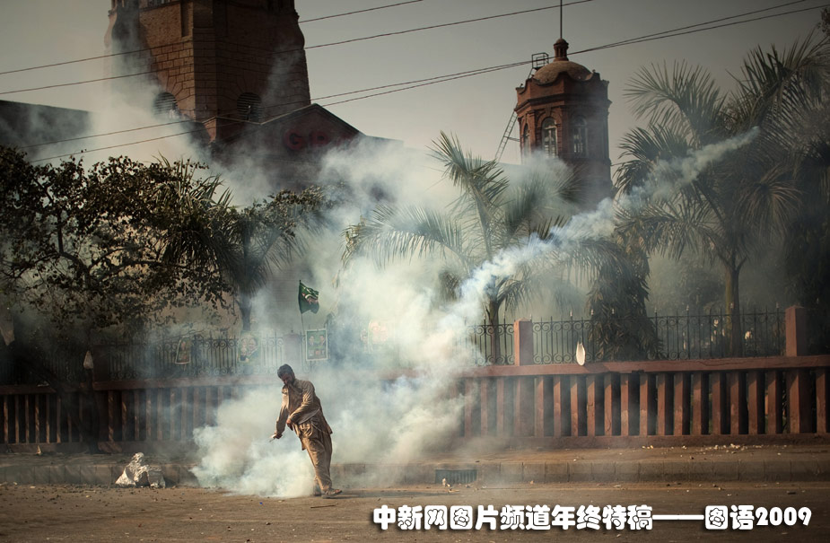 3月15日,一位巴基斯坦民众被炸弹的烟雾笼罩。