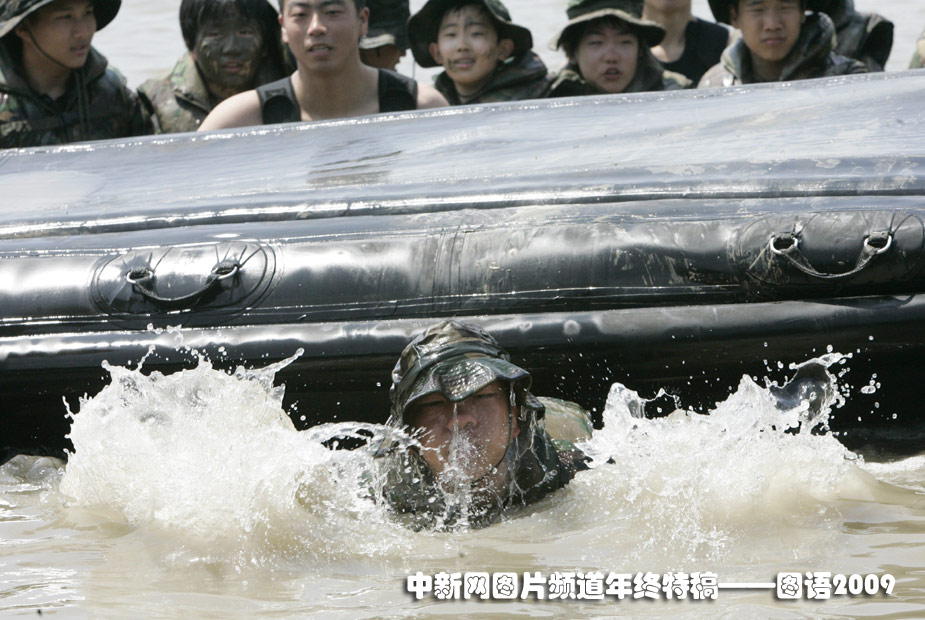 7月30日,在首尔的美军基地参加军训夏令营的韩国数百名学生来到金浦进行了泥地训练。