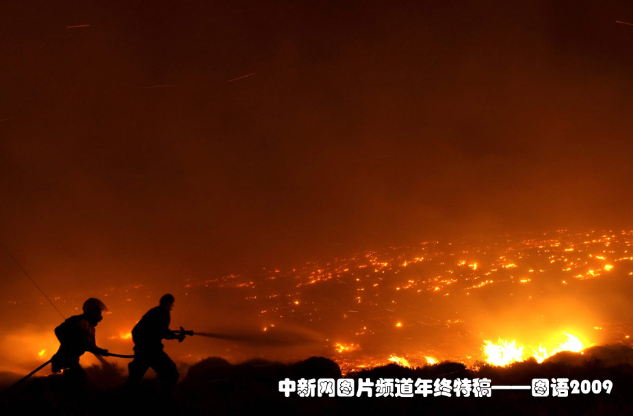 8月23日,希腊雅典附近的居民正在试图扑灭袭击当地的山火。