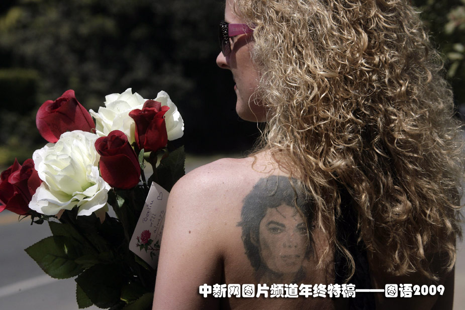 9月3日,流行天王迈克尔·杰克逊的私人葬礼在加州林茵纪念公园墓园举行。一位歌迷前来送别。