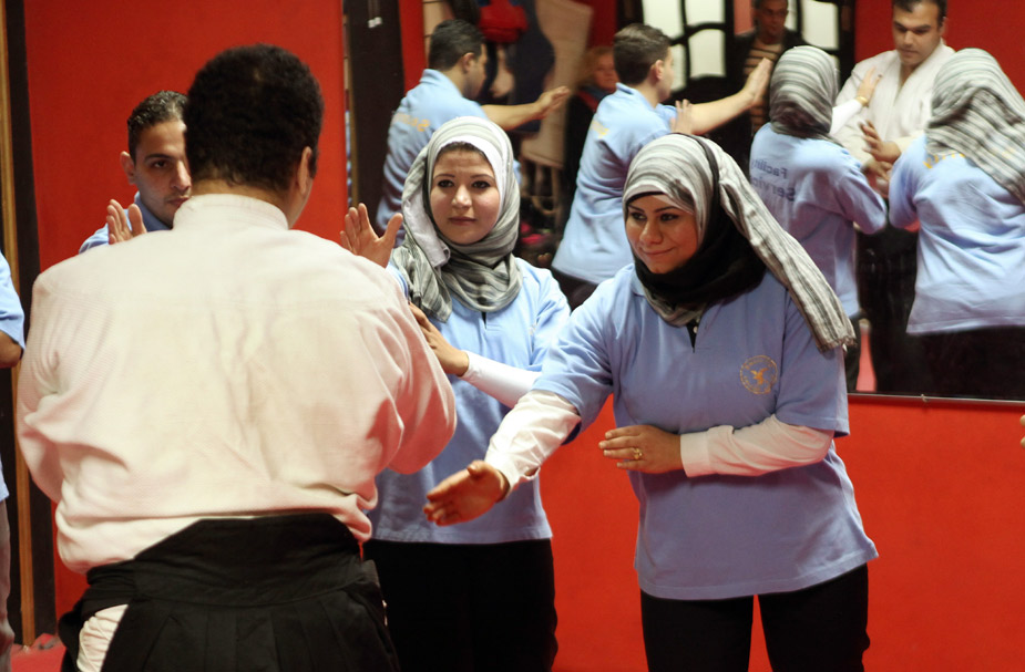 近日,埃及“女子警卫”在开罗郊区一个体育馆进行训练。她们专为有一定社会地位和名气的女性提供服务。图片来源:中国新闻网