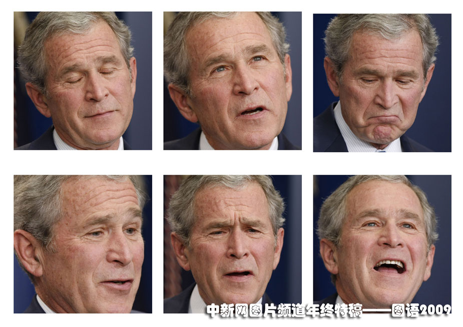 表情丰富的小布什:2009年1月12日,美国现任总统布什在白宫举行告别记者会时的所作的喜怒哀乐表情。