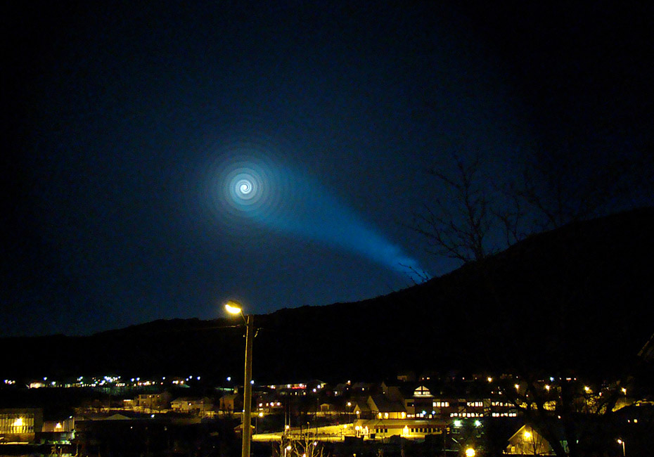 12月9日,挪威北部特罗姆瑟市上空发现不明“蓝色发光螺旋状”现象。图片来源:中国新闻网