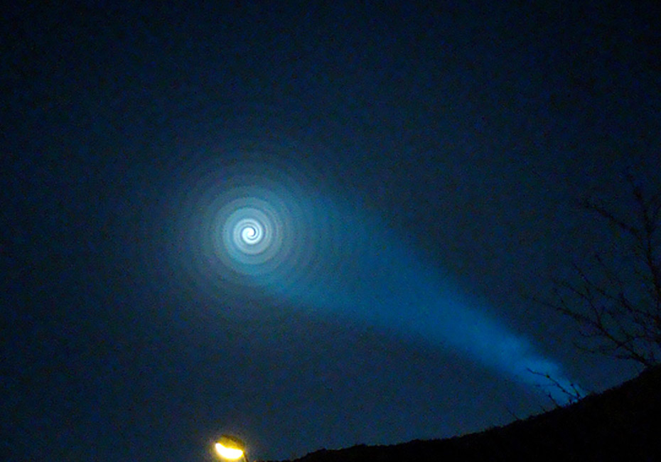 12月9日,挪威北部特罗姆瑟市上空发现不明“蓝色发光螺旋状”现象。图片来源:中国新闻网