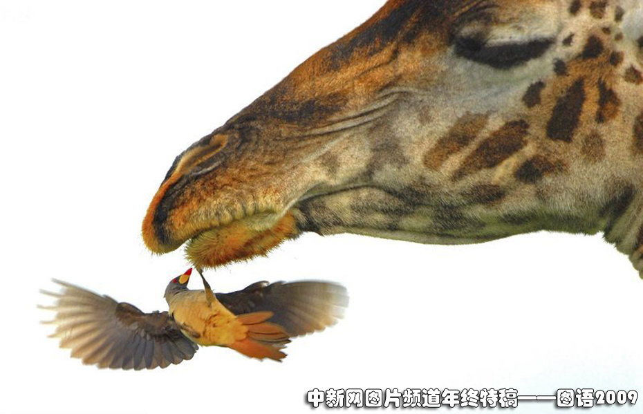 摄影师Billy Dodson在非洲塞伦盖蒂国家公园拍摄到了这个有趣的画面。这只黄嘴啄牛鸟看起来似乎像在与长颈鹿亲吻。而实际上它只是在吃长颈鹿皮毛上的寄生虫。