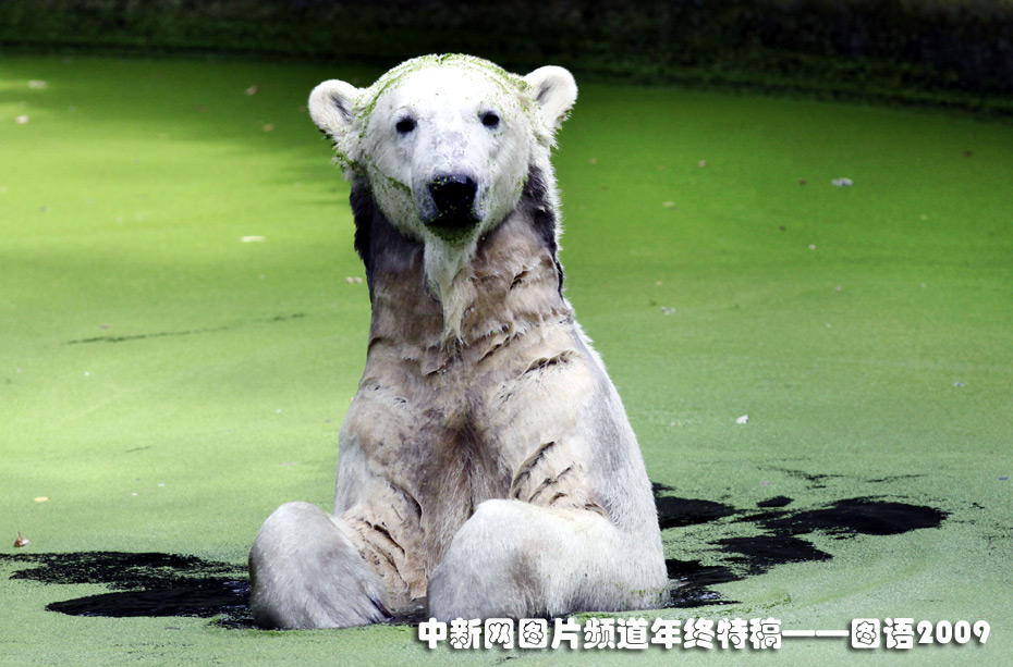 德国柏林动物园的明星北极熊克努特正在水中“自娱自乐”。