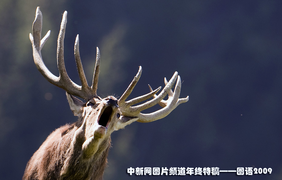 奥地利蒂罗尔州的一个野生动物园内,一只发情的雄鹿在嘶吼。