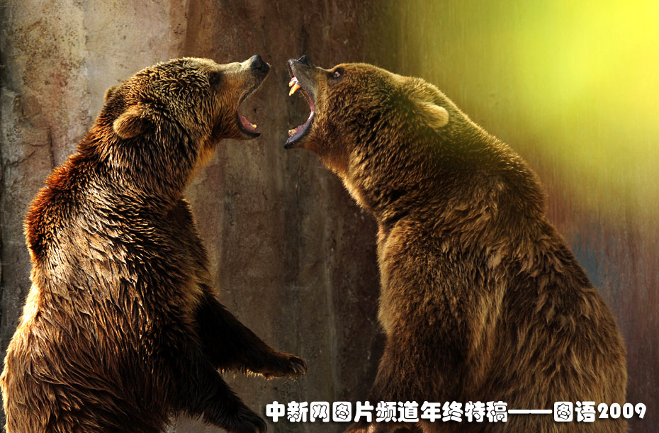 西班牙马德里动物园内,两只灰熊“爆发战争”。