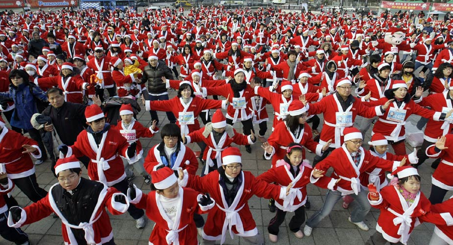 12月12日,“圣诞老人”马拉松赛跑当日在首尔举行。超过一千名“圣诞老人”参加了此次长跑活动。
