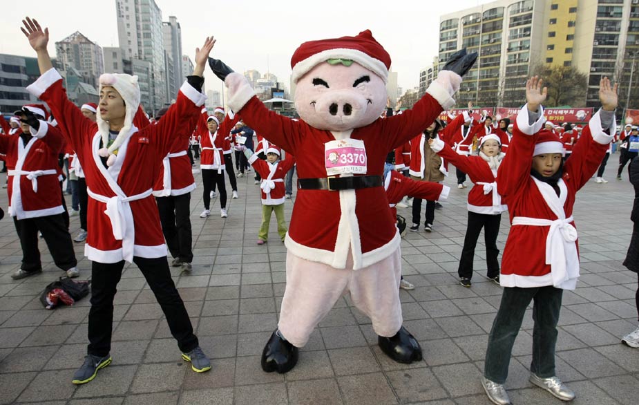 12月12日,“圣诞老人”马拉松赛跑当日在首尔举行。超过一千名“圣诞老人”参加了此次长跑活动。