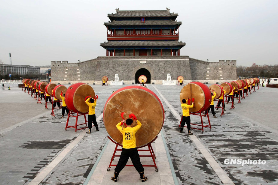 12月12日是气候变化全球行动日(Global Day of Action),国际环保组织绿色和平联同北京20名鼓手,在北京古老的永定门城楼前擂响巨鼓,用震耳欲聋的铿锵鼓声助威正在哥本哈根召开的全球气候大会。鼓手们以中国传统的擂鼓助威方式,通过凝重急促的鼓声向全世界发出警告:“拯救气候,刻不容缓”。