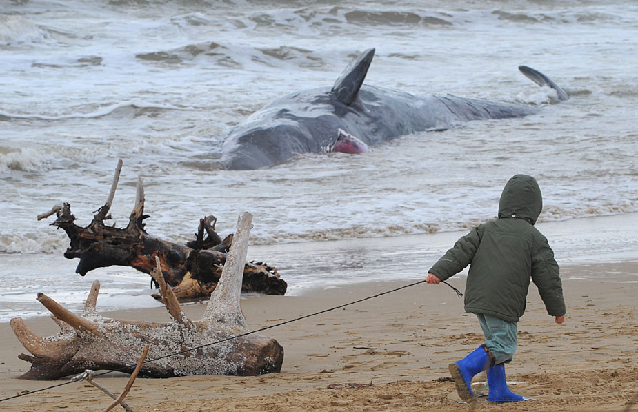 一群抹香鲸12月12日在意大利南部海滩搁浅,其中至少5头已经死亡。据称,这群抹香鲸共有9头,其中有2头经过救援已成功游回大海,目前相关人员对另外2头正在进行救援。图片来源:中国新闻网