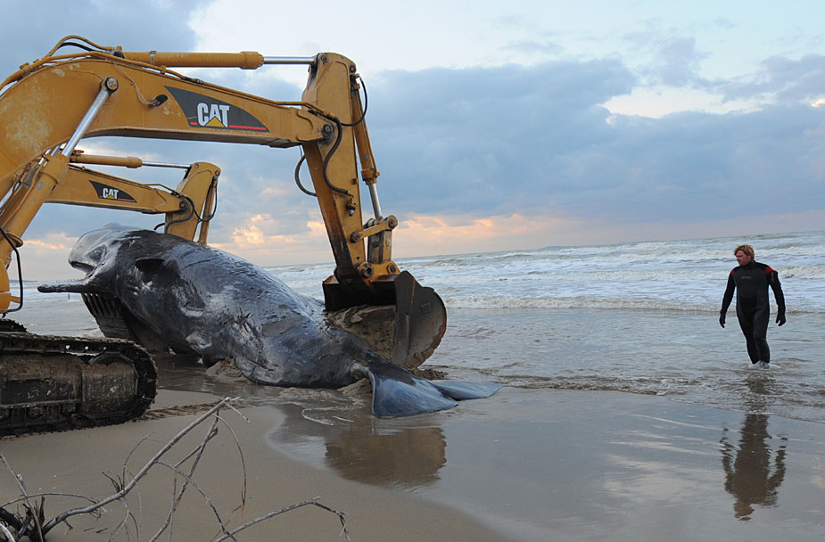 一群抹香鲸12月12日在意大利南部海滩搁浅,其中至少5头已经死亡。据称,这群抹香鲸共有9头,其中有2头经过救援已成功游回大海,目前相关人员对另外2头正在进行救援。图片来源:中国新闻网