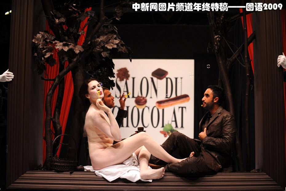 10月13日,第15届法国巴黎巧克力展开幕,众多明星身着巧克力服饰亮相。